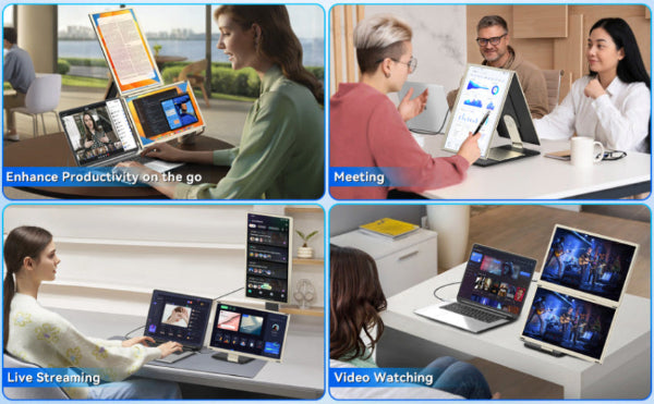 Bought the dual 15.6" screen extender and now run three full displays (laptop + two extenders) on my Dell XPS. Zero lag, panels are sharp and bright, colors match perfectly after a quick ICC profile tweak. Fold-out design is sturdy, magnets snap everything in place, and it adds barely to my bag. Went from constant alt-tabbing hell to blissful spreadsheet-code-terminal heaven. Battery life drops ~25% when both are on, but totally worth it.