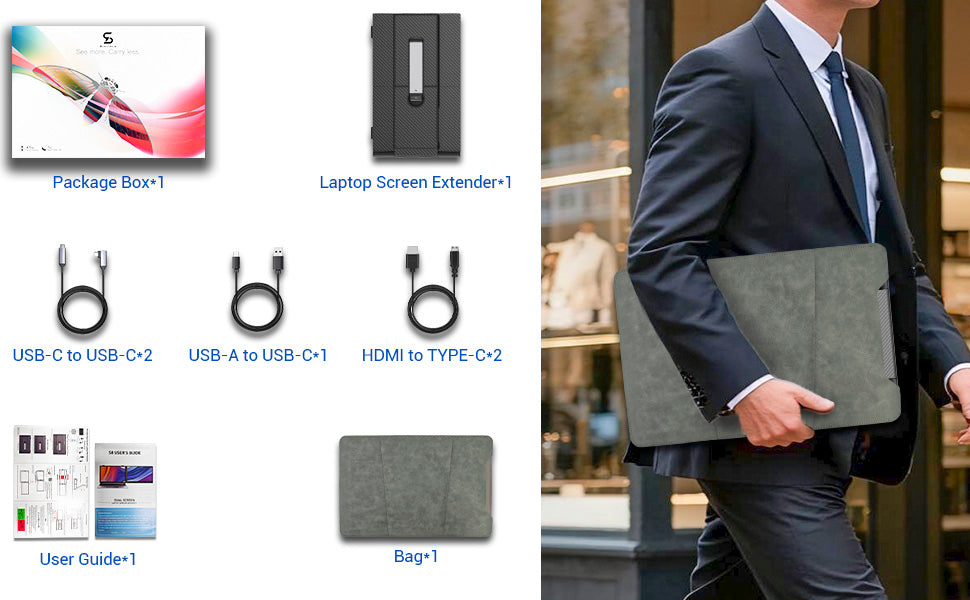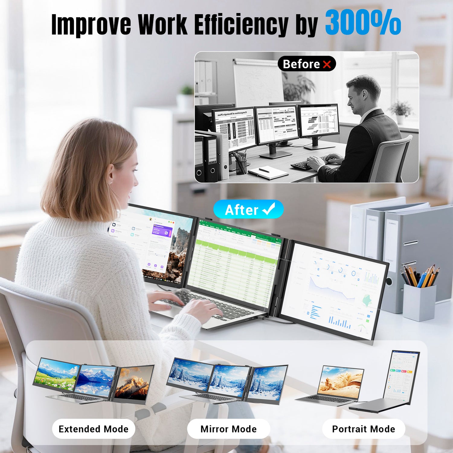 Whether you choose a USB-C, USB-A or HDMI connection, simply plug in the laptop screen extender and start your daily use without any additional drivers.